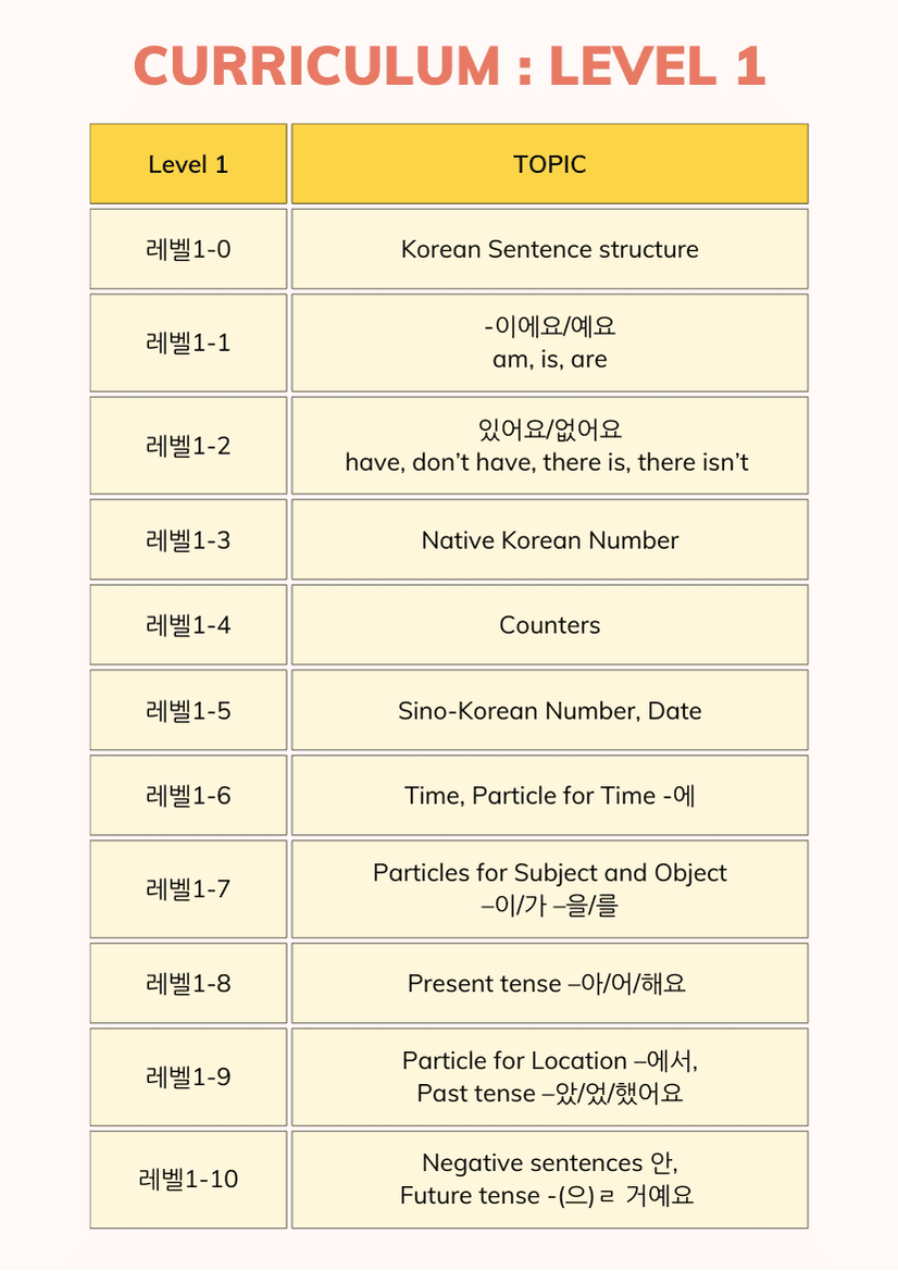 When you finish this course, You will be able to speak simple Korean greetings and introduce yourself. And you can have a casual conversation with Korean about what you did, when you did and where you at. The expressions learned in this course are very basic but most essential, so it will be very helpful when you study Korean in the future.