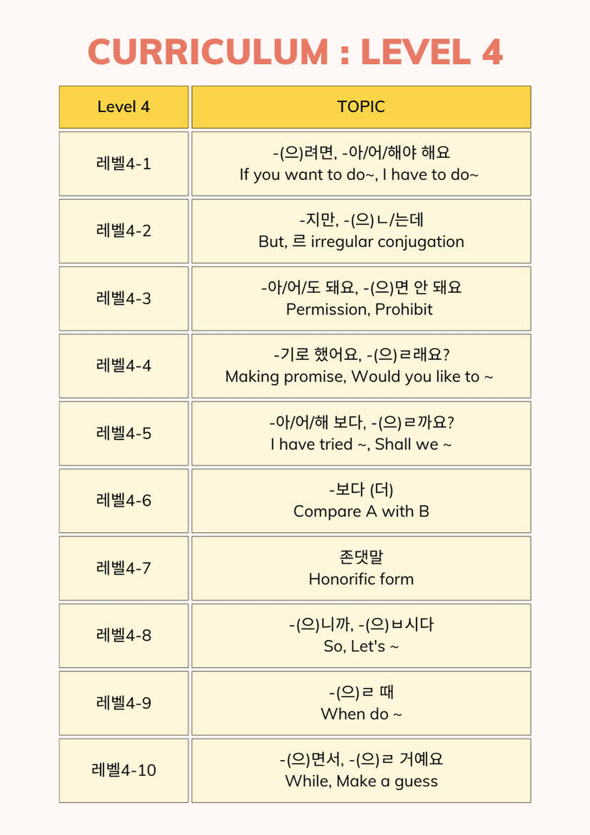 After you finish this course, You talk about what you have to do. And you can talk about your experience and make new plans with your Korean friend. When you finish this course, you are ready to go up to the intermediate level.