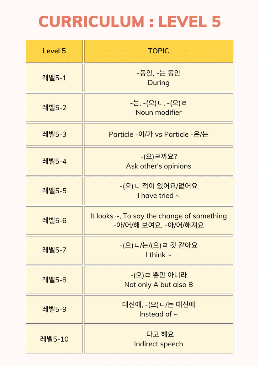 After you finish this course, You can speak Korean sentences more accurately than before. You will be able to use not only expressions used in daily conversations but also intermediate expressions that often appear in tests to check Korean language skills.